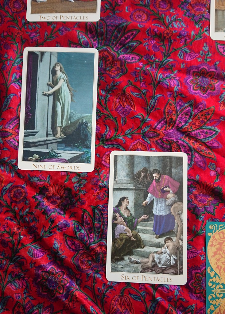 The Knight of Pentacles: What a wonderfully puzzling card! I feel like there’s many ways to read this–a steadfast, knight in shining armor who will protect me, a steady eddy, a person of underrated skill, someone who is indifferent to me, OR a person I save who I am indifferent to that lavishes their affections onto me.