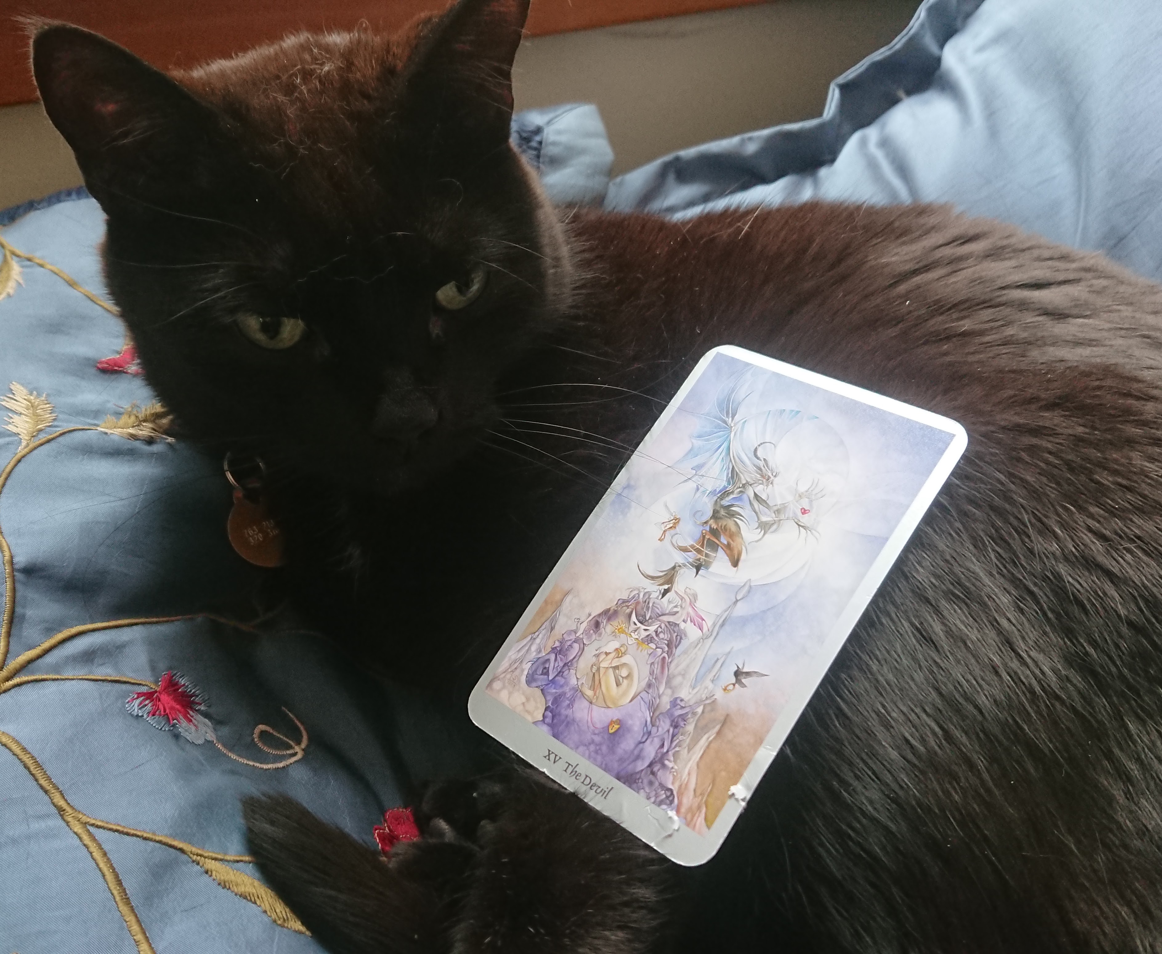 Card the deck identifies me as: The deck has decided that the Queen of Cups represents me in my normal, creative self, though I have to admit that I don’t particularly resonate with her, but I do feel a connection with the action she is doing (lol!). Conversely, when I am being naughty, this deck will spit out the Knight of Wands and be saucy for a few days.