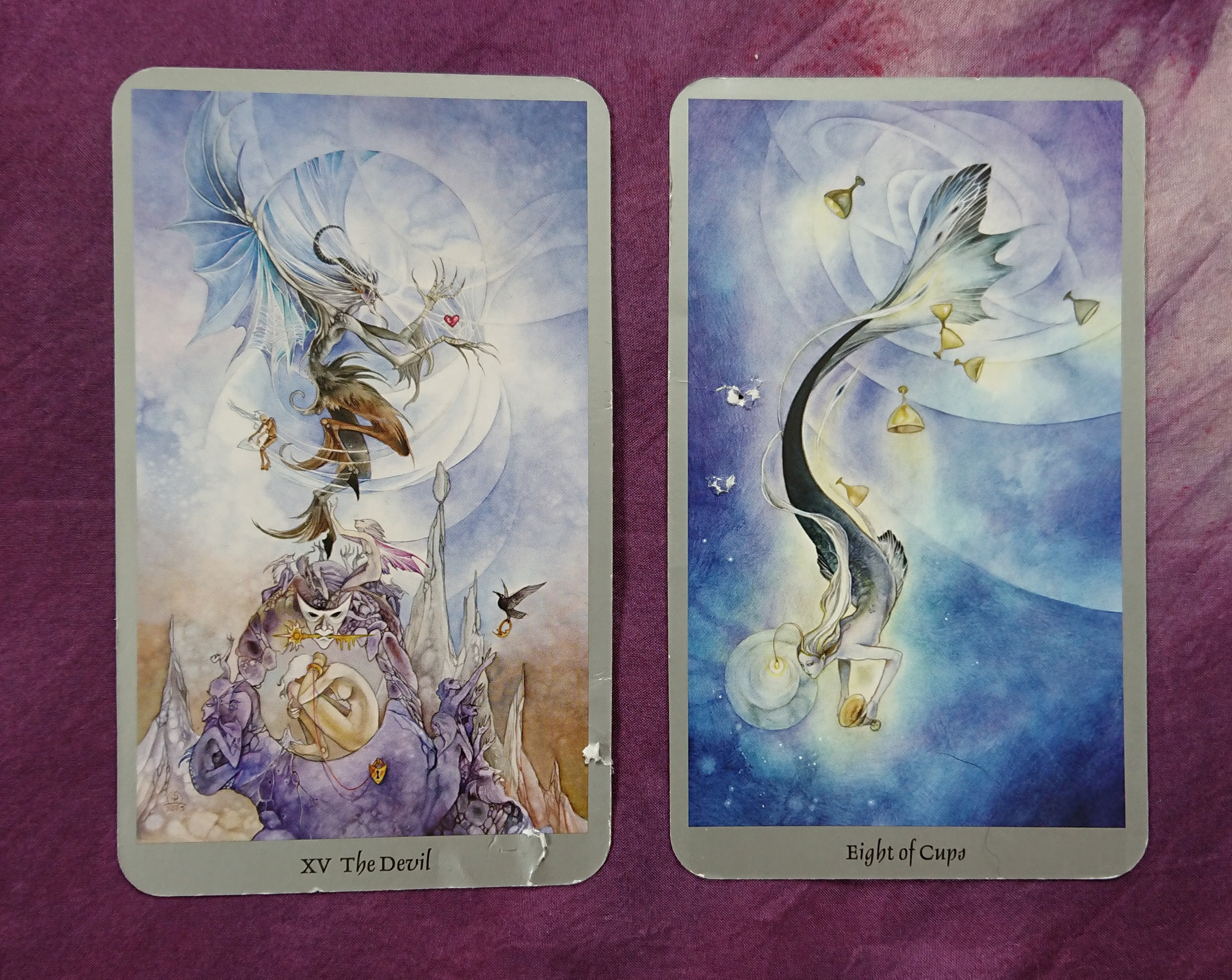Maybe I was lucky (or unlucky) that the Shadowscapes Tarot is the first deck I learned Tarot from for almost a year before exploring other decks. In a way, starting out with a semi-nontraditional RWS helped me learn how to really sit with an image and think, rather than learning the route RWS meaning. My friend who started reading Tarot about four years before me used this deck almost exclusively and I came to love it when handling it with her.