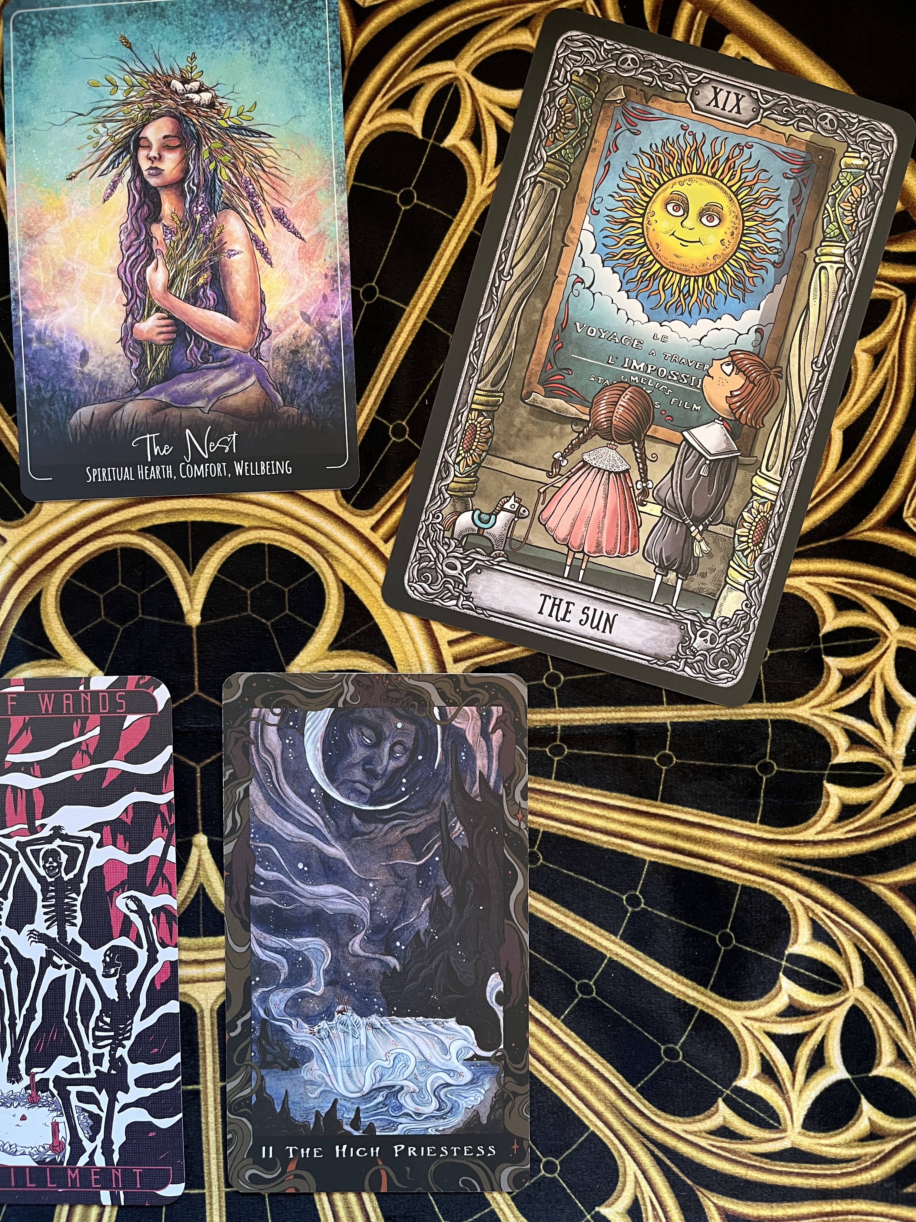 When I choose my tarot decks, the weather is the largest factor in what makes the cut and what goes back on the shelf. I wish I could say otherwise, that I use some divine intervention to choose my decks, but no, that’s not how it works for me. In a way, given the balmy temps, I’m having a bit of October take-two, which is great seeing as there’s always too many spooky season decks to go around.