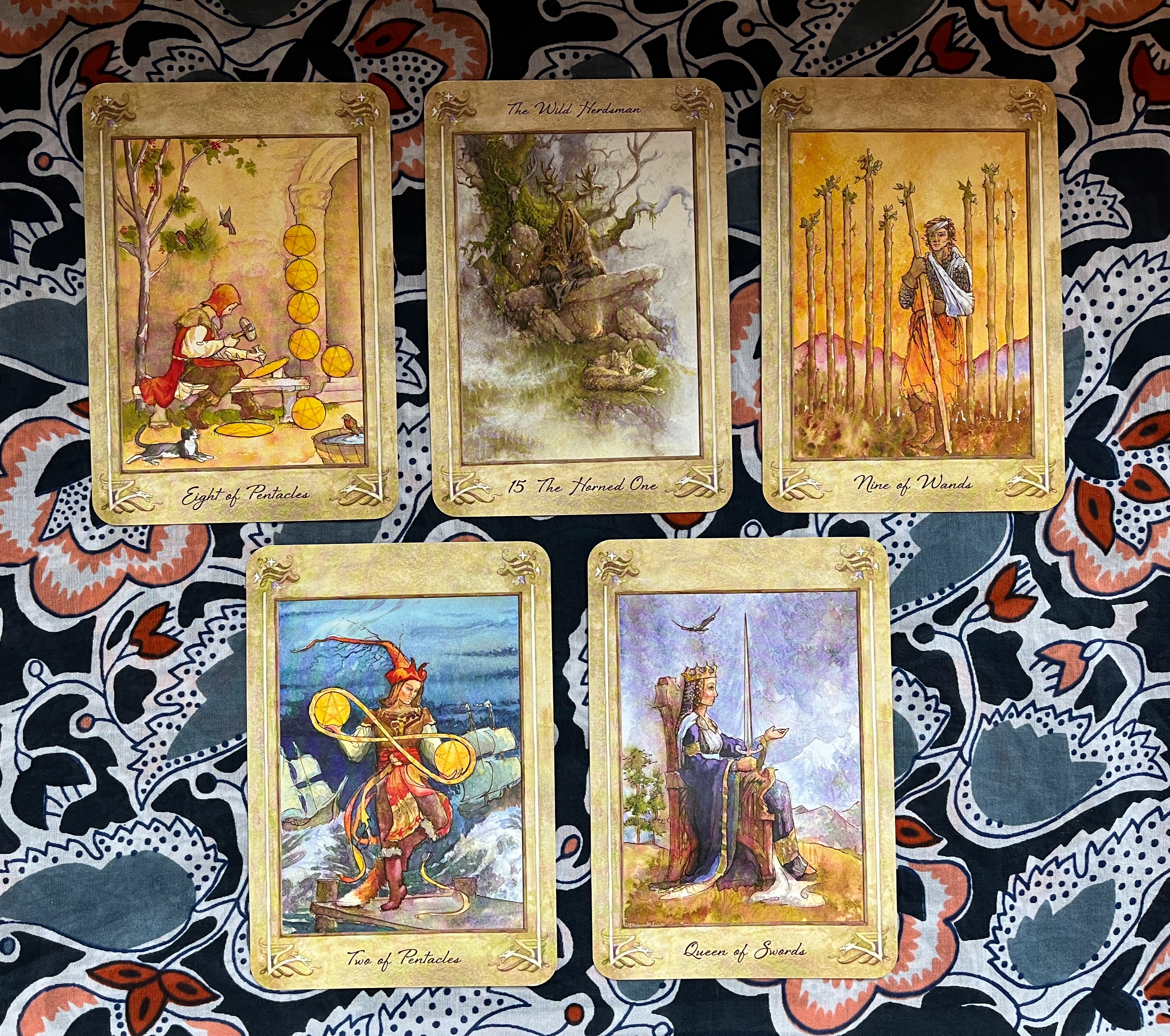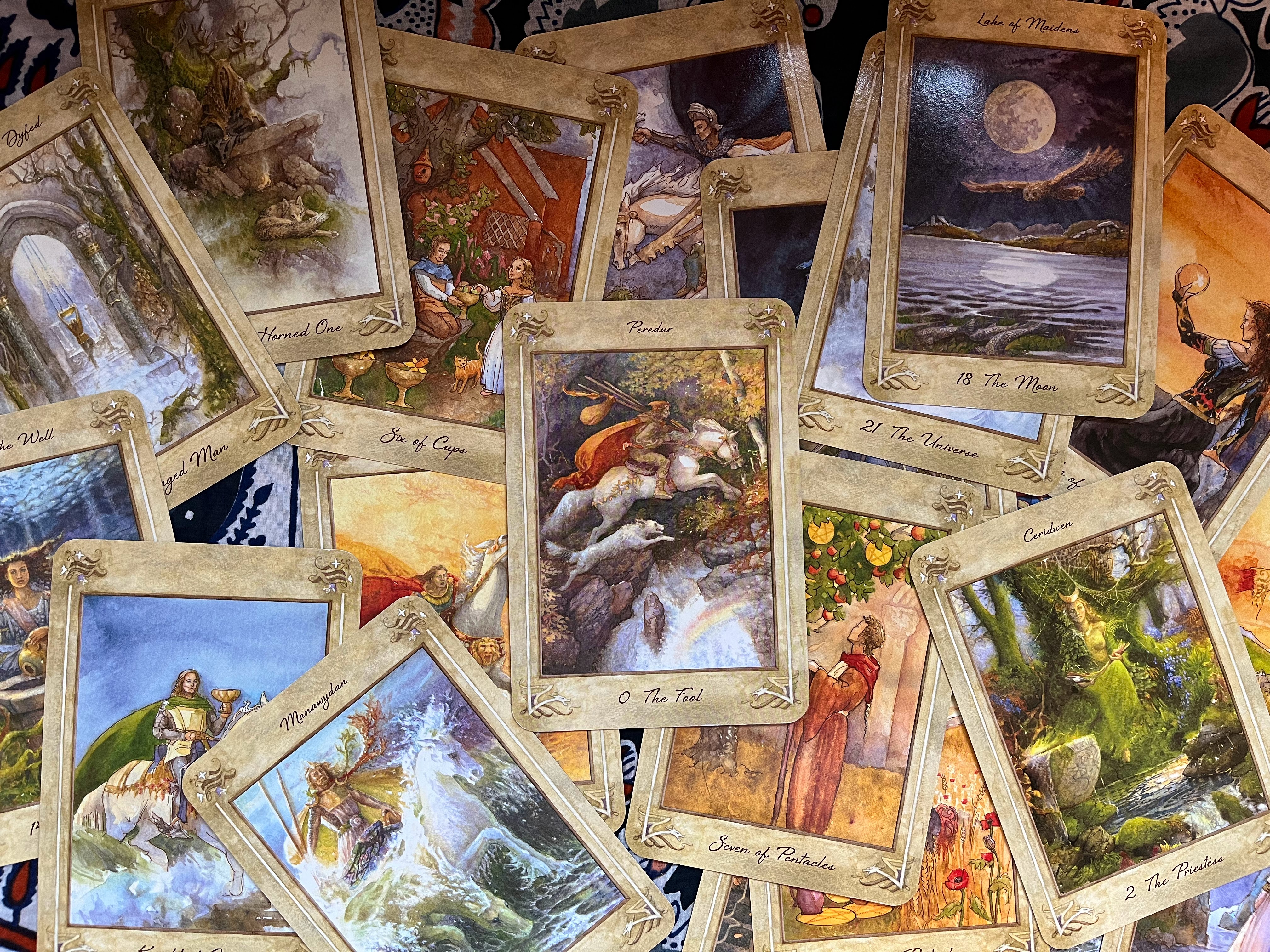 Similar Decks: The Insight Tarot (in art style), The Arthurian Tarot Deck, (by the same artist) Legend: The Arthurian Tarot, The Druid’s Craft Tarot, Tarot of the Druids, The Wild Wood Tarot, Universal Celtic Tarot, Anna K. Tarot, Tarot of the Golden Wheel, Ana Tourian’s decks