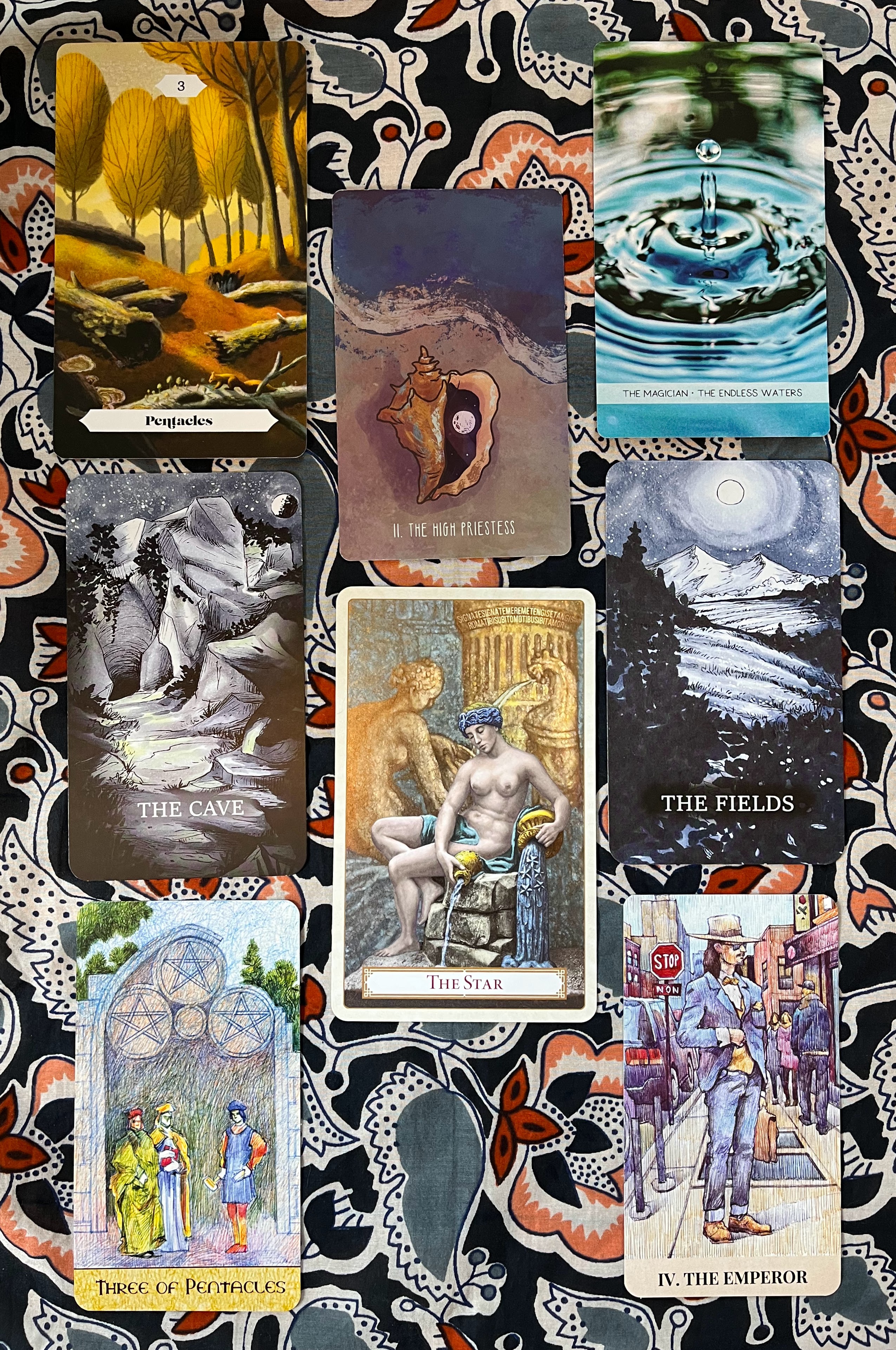 July’s deck theme for me is ‘decks of place.’ These are decks where the place/location we see in the image is very important for the card’s context. This feels like just the cool glass of water my soul needs after some serious self-reflection with the Thoth decks! I ended up picking more decks than usual for this month, but what can I say, I feel inspired! It also helps that three of the decks I consider myself very familiar with so I can focus my time on the newer decks instead.