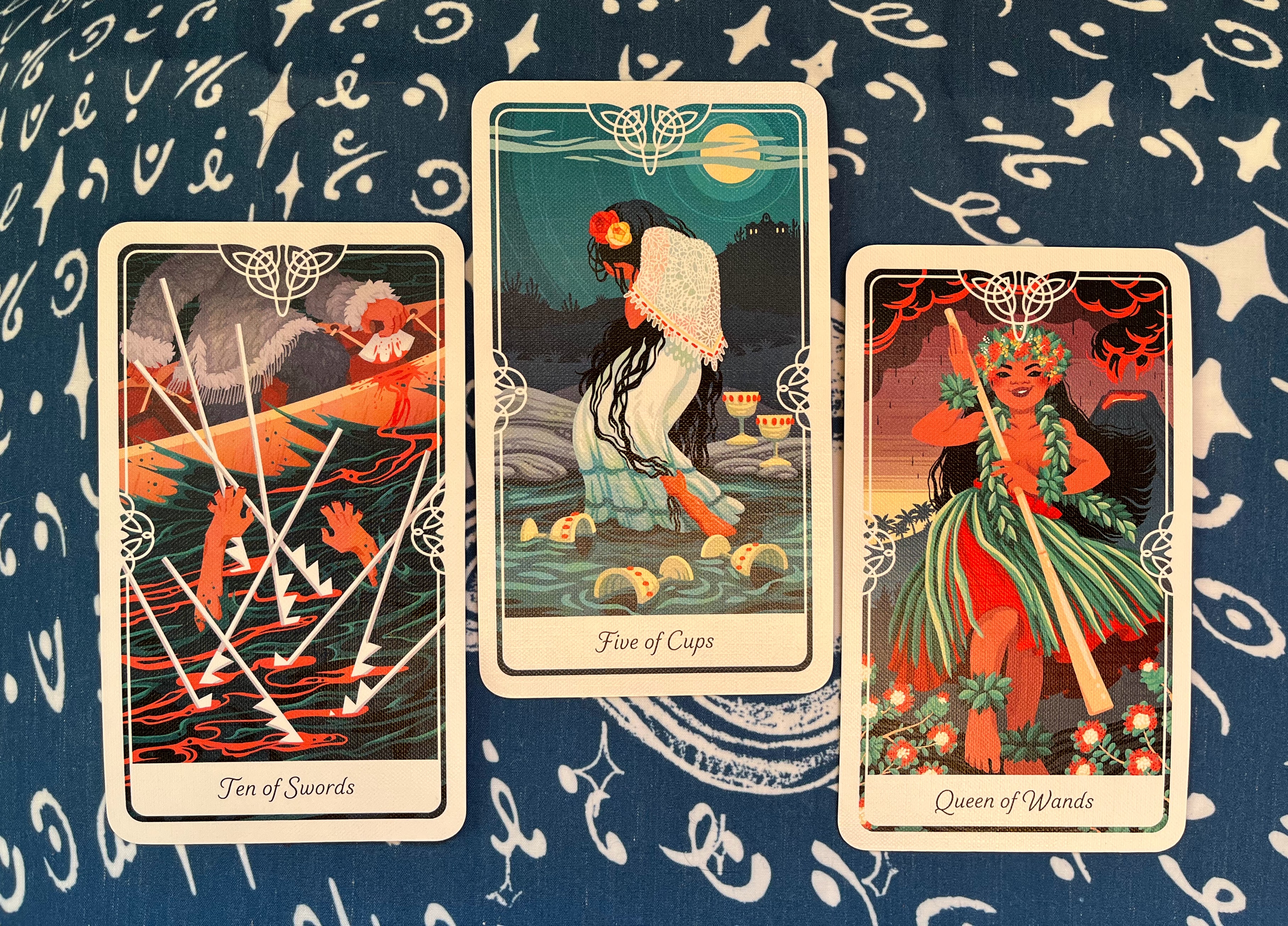 Art: 5/5 I mean, people like different art, but this is pretty accessible and stellar all around. There’s a lot of white and blue as the standard theme of this deck (partly why I think of it as an “Air” deck) and vibrant colors throughout make these cards visually pop. The people are definitely characterized, but their expressions are clear and range from the frightening to the endearing. I LOVE the vast diversity of the characters in the cards and nothing feels forced. This is a very authentic feeling deck and part of why I adore it so!