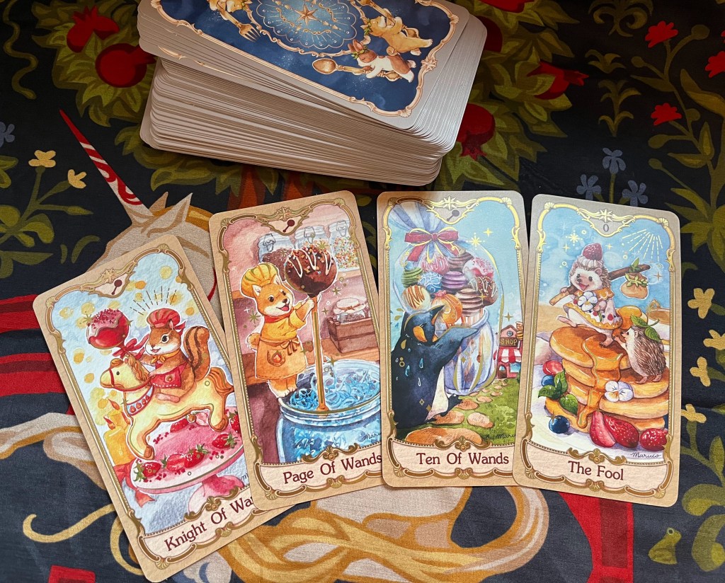 This deck IS totally saccharine sweet and it’s perfect for it’s content! Every time I draw a card from this deck I’m so impressed how the artist really understands the RWS and can make such a wonderfully complex deck about animal confectioners, patissiers, and chocolatiers. Delightful and always bringing a smile, this deck is clever, tongue-in-cheek, and so gosh darn cute, it is the only deck I’ve purchased as a gift for a family member. This is one of those decks that arguably does the RWS better than the RWS. Burn me at the stake.