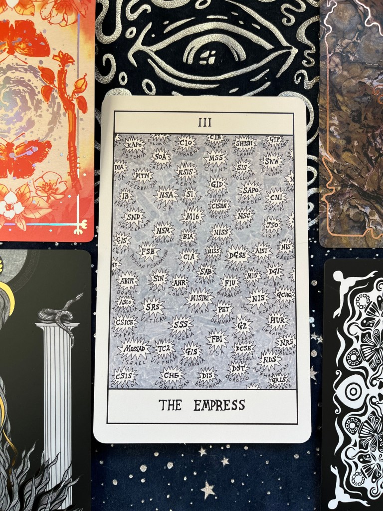 Normally I read my Empress as nature or a nature-driven creator, the wellspring of creation, a Persephone entity, a mother, the untamed wilderness to the organized Emperor’s civilization. Underneath that assumption is there are invisible things, almost like magic, at play. Systems built to keep a world working a certain way, much like a natural food chain, the lifecycle of water, etc. Here it seems we see some human created systems that operate unseen in our world. As I said already, the Hexen 2.0 is above my reading level as it were, and I’ll let the reader draw their own conclusions about this card, but I’m keeping my classic Empress in mind as I go on.