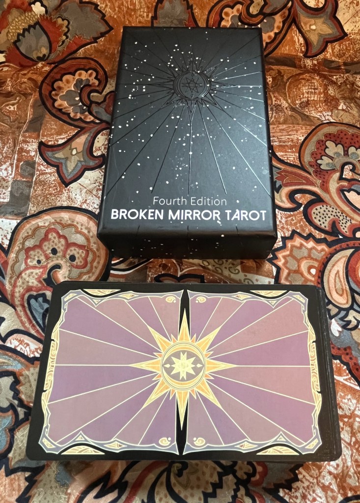 The Broken Mirror Tarot (4th edition) The Hero’s Journey, or If Stain Glass was Anime, 2021, out of print, 5th edition available currently but has altered images and colors. There is also a Marseille style available (coming in a future review)