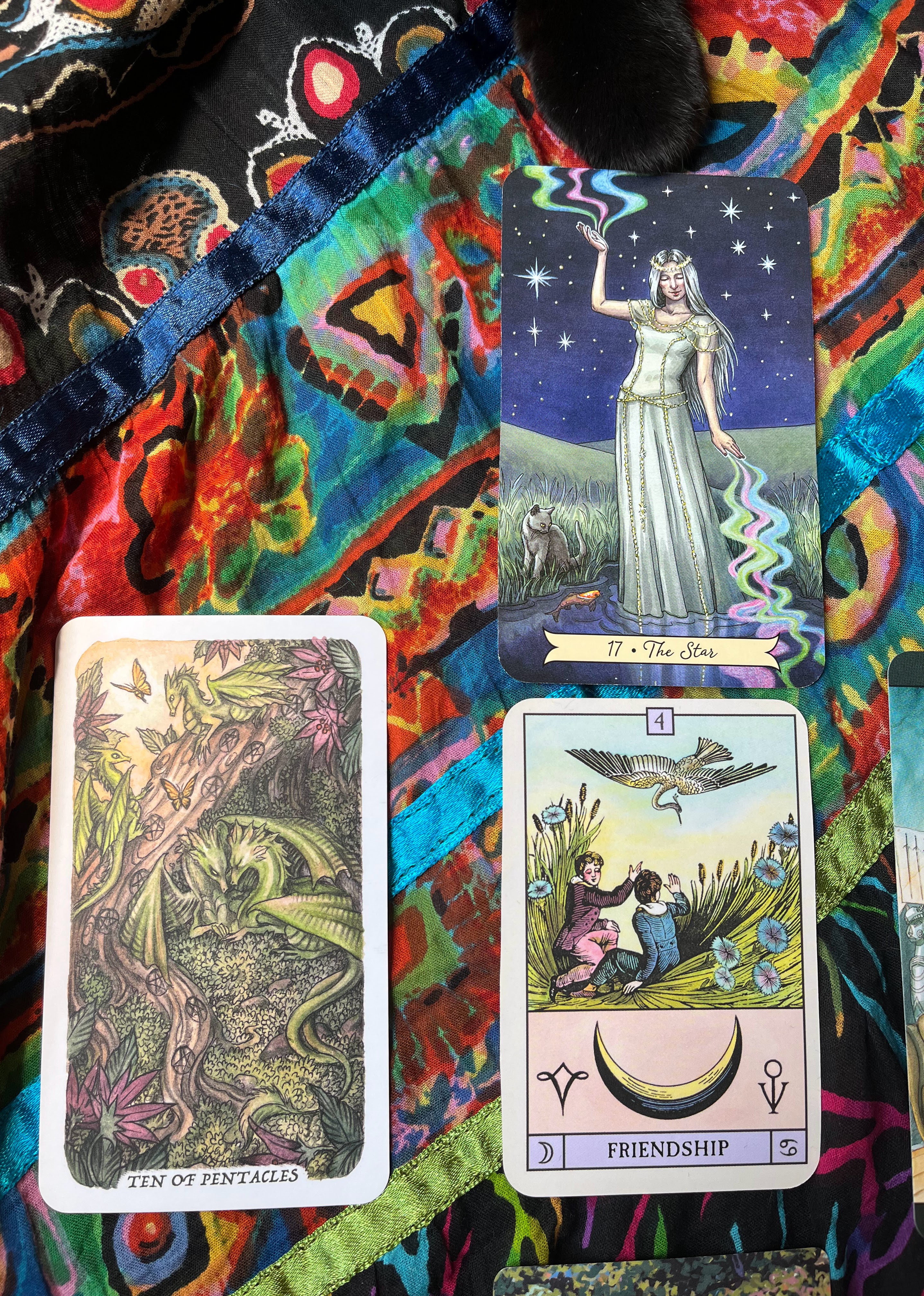I actually asked the cards for this month to tell me how to navigate all the stuff I gotta do. For my “theme” I drew Friendship from OotRS. Yes I am a cancer. Sometimes you need a different space and a different person to show you truths about yourself. It’s easy to get into the weeds, but without outside perspective of a caring friend, you might miss the beauty and awe the world has. Now is not the time to sequester yourself in your own space and work–get out there and adventure with others. Life always has it’s problems but friends can make it easier to deal with them and realize that’s the natural ebb and flow.