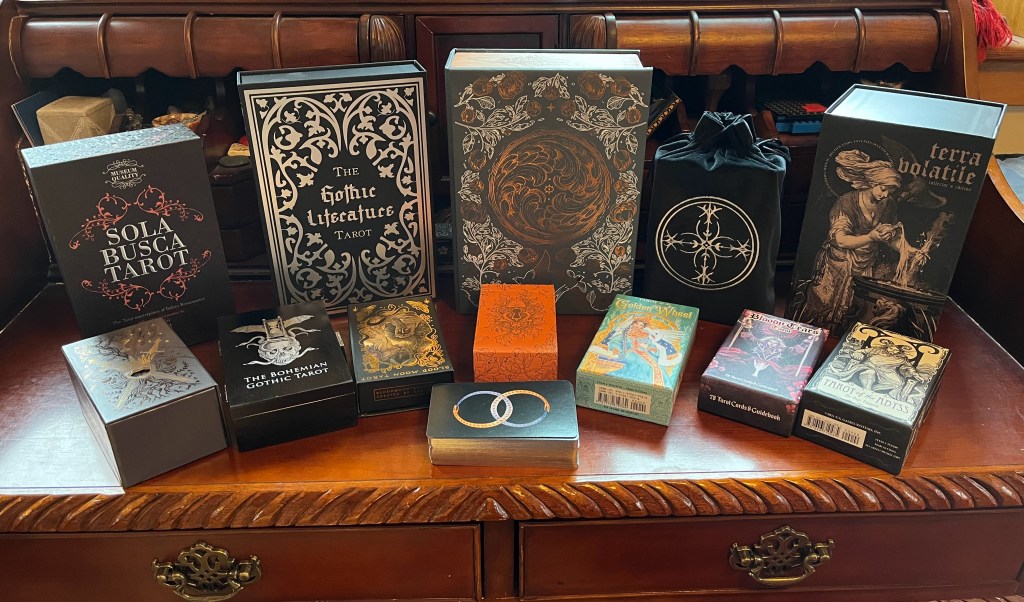 This is a delightfully creative and excellent fall/winter Tarot tag developed by Tarot Geek on Tarotube (see original video here: https://www.youtube.com/watch?v=6BKfUbLnVjM) that uses concepts from the Dark Academia aesthetic as themes to apply to our tarot decks. So, full disclosure, I actually really like the Dark Academia trends and I love me a new twist on “gothic” lifestyle, so I have been chomping at the bit to do this tag! BUT! I’ve been waiting for a specific deck to arrive because I SO BADLY wanted to include it in this list! I have it in hand, so now I get to have some fun!