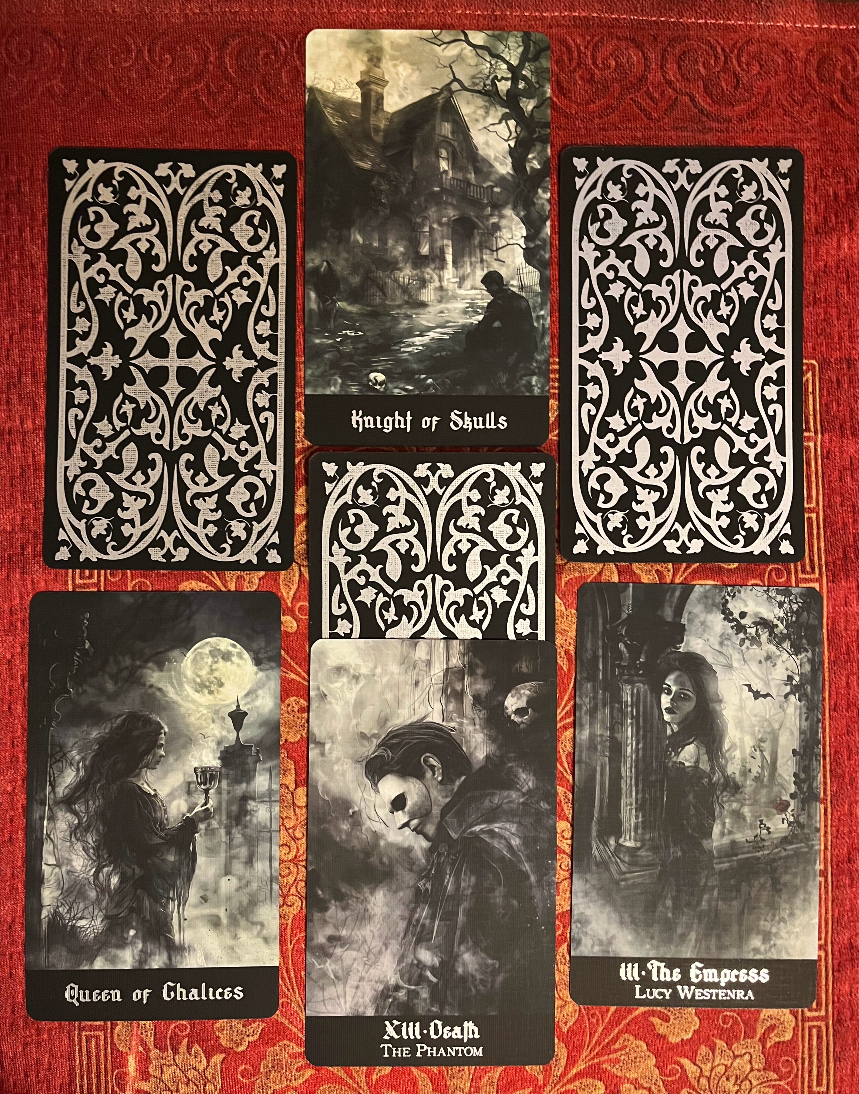 I was a dumb dumb and passed this up on its Kickstarter campaign because I wanted to see all the cards. I liked what I saw, but I was being stubborn and wanted to see ALL THE MINORS. Mostly I remember passing on the The Literary Tarot Kickstarter a couple years ago and I felt like I dodged a bullet because it was a rocky production and I mostly don’t agree with the choices of books they put with many of the cards—what can I say, English was my undergrad. BUT! I do LOVE in this deck the character choices for the majors, and while the minors are rather simple, the major characters do reappear in the minors and I love the general ghosty spooky vibes this whole deck has. It is very romantic and dark and a little disturbing and I’m here for it.