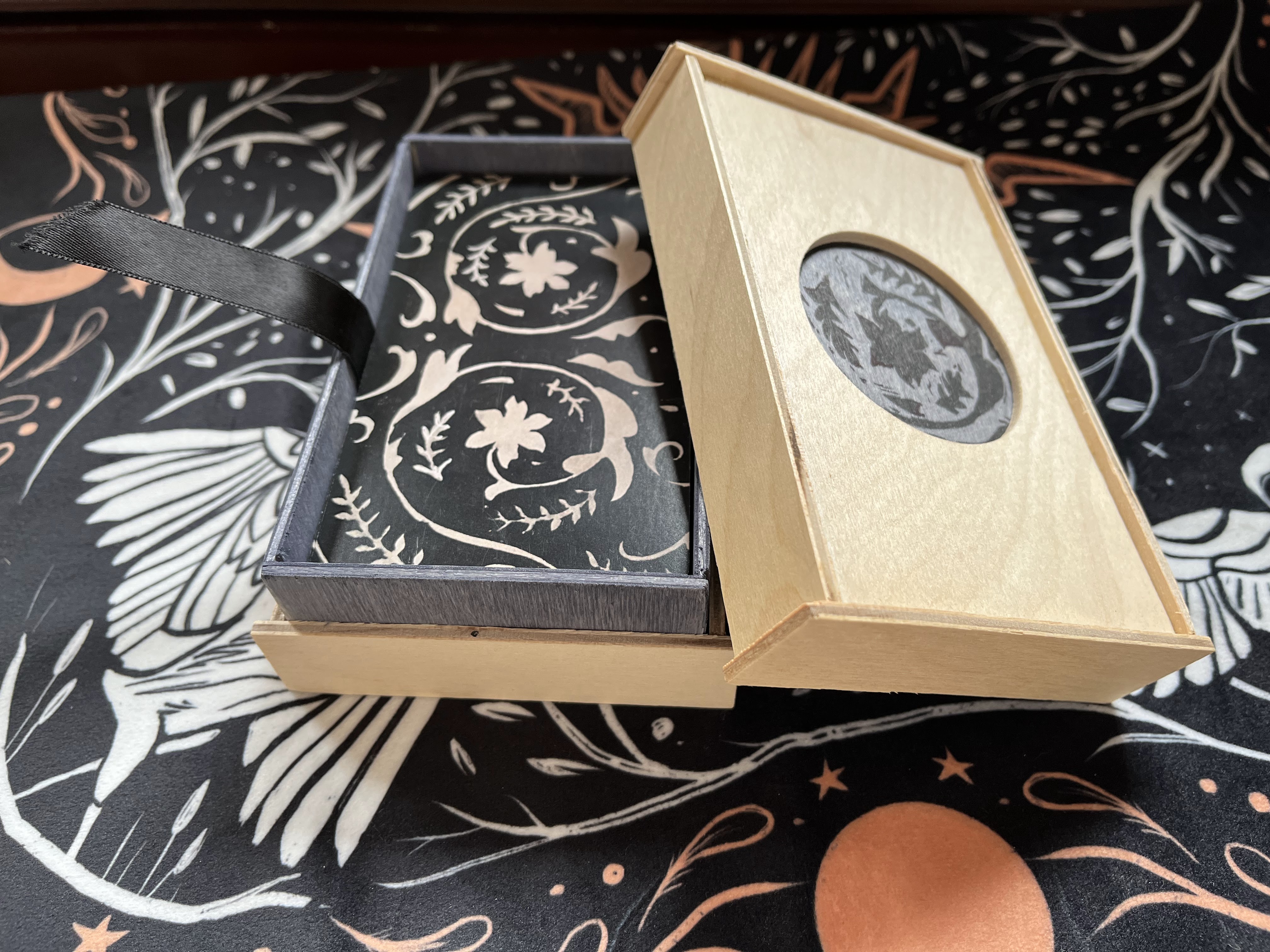 Card Quality: 2.5/5 I adore the odd length to width ratio—it makes these cards really easy to shuffle and I feel like I can know them even with my eyes closed, which is kinda intimate. They began to fray almost immediately, but luckily it doesn’t ruin them since they have a bit of a “worn” aesthetic already. Over all I wish they were better cardstock.