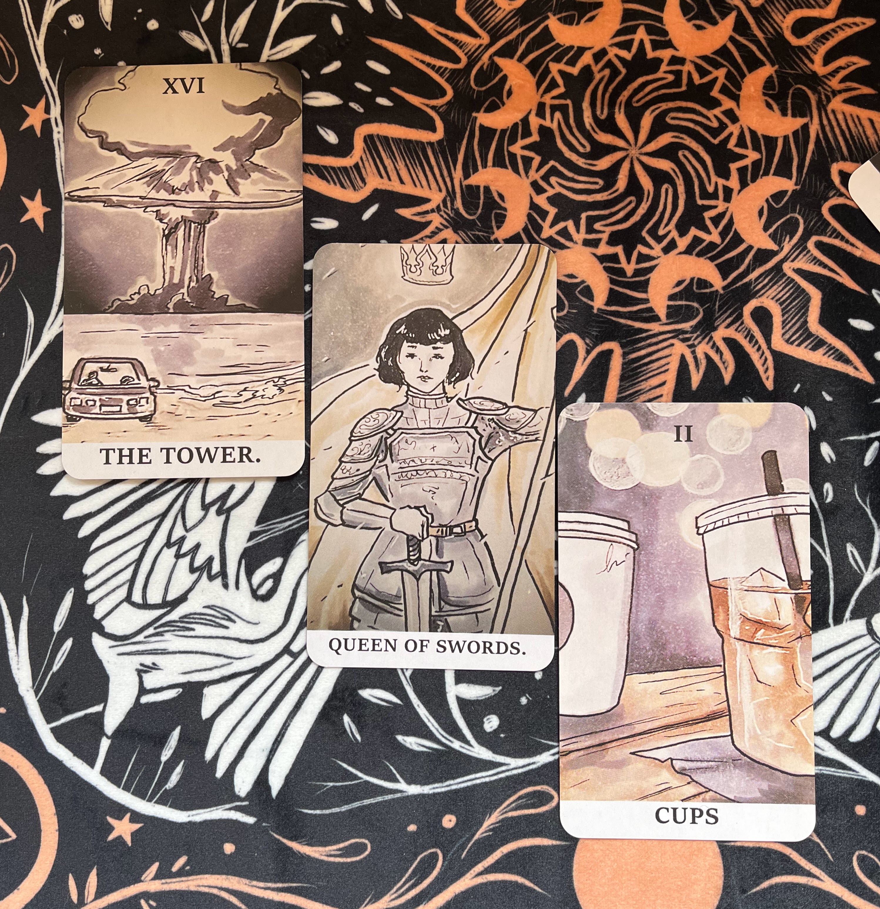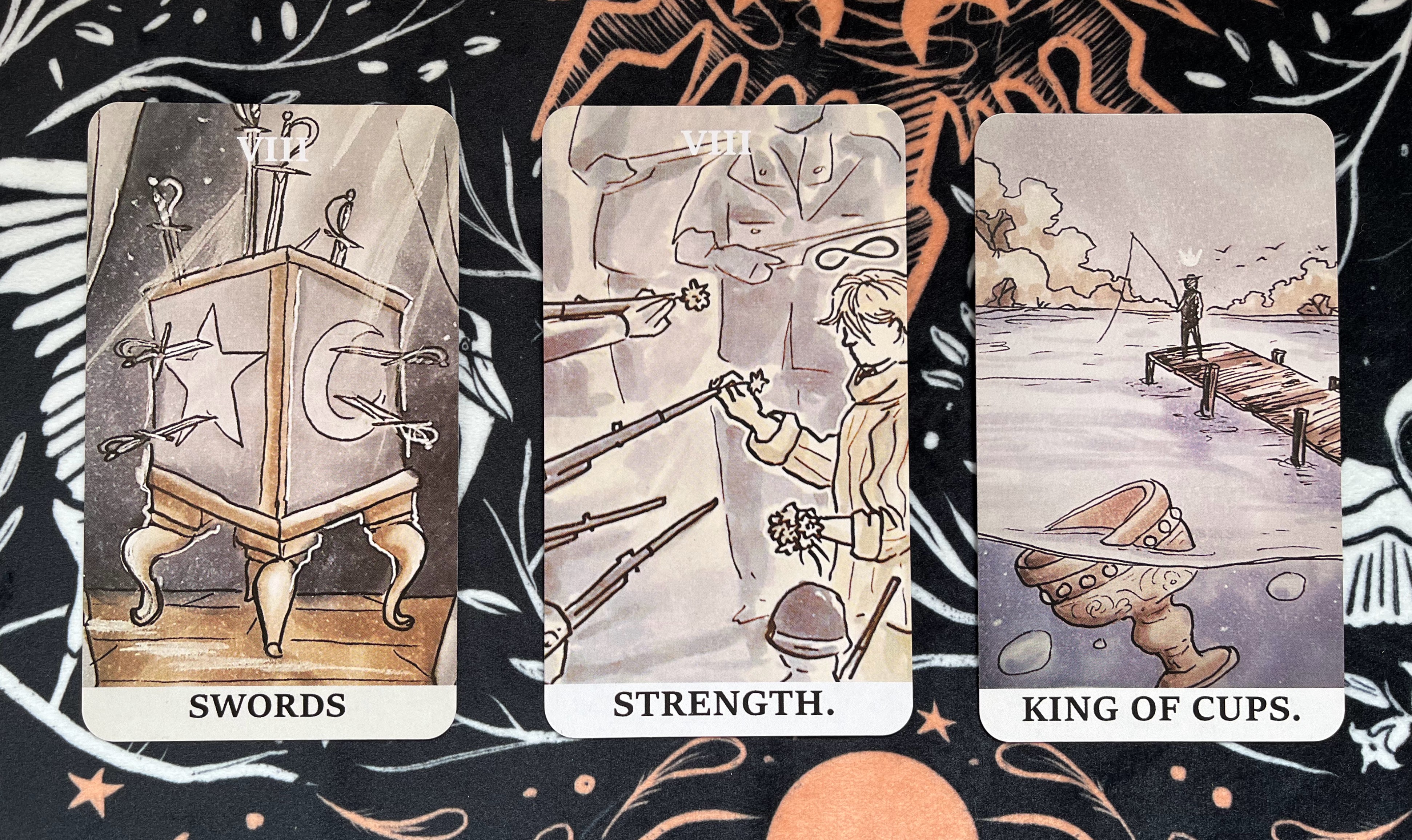 Least Favorite Card: XVI The Tower–I dunno, I want more? Compared to the originality and sheer emotional weight of the rest of this deck, this feels a bit mellow. And VII The Chariot also doesn’t seem to click with me.