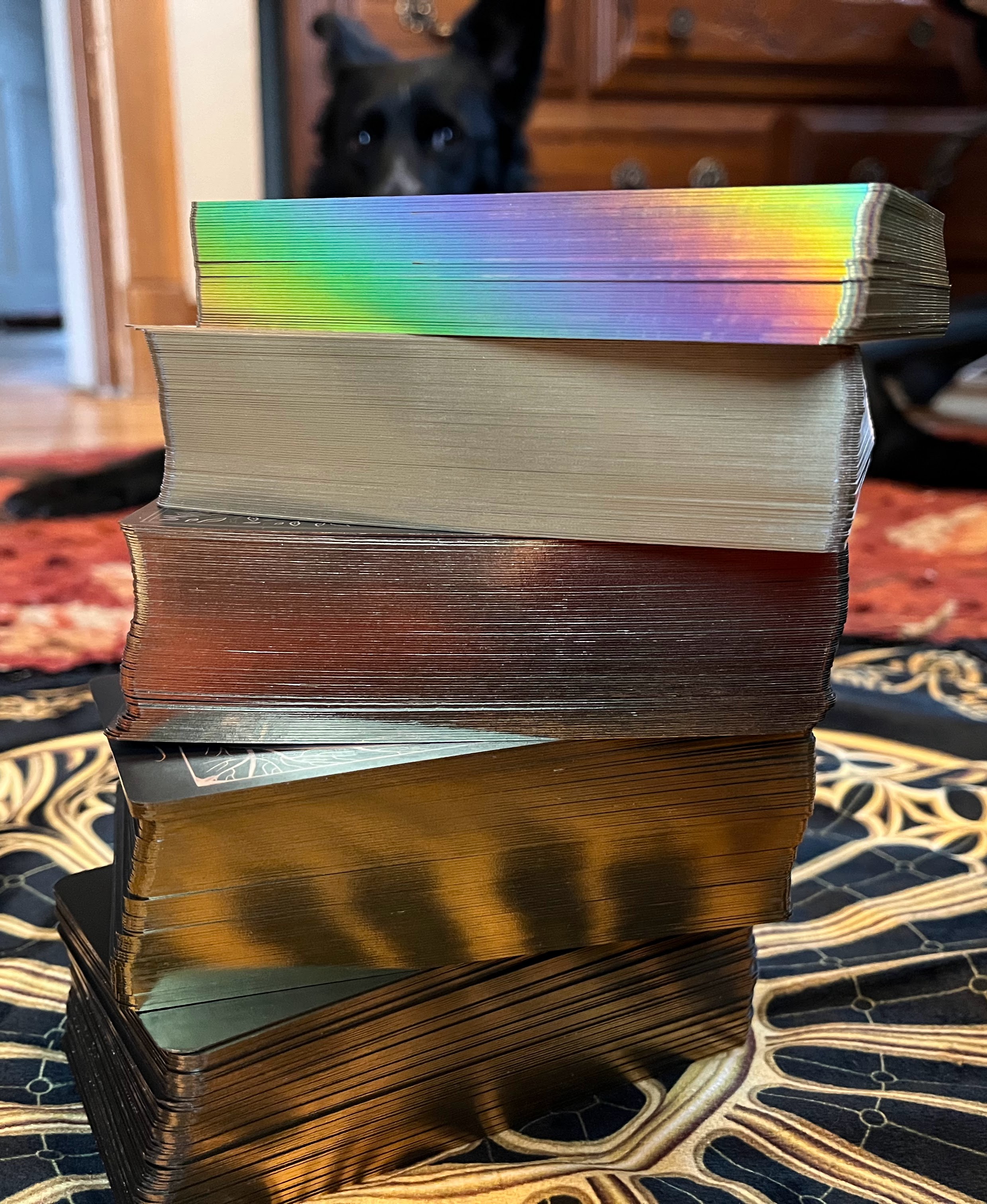 This was the deck I was waiting for. I held off purchasing this very strange, five-minor arcana deck (that is a blend of RWS, Thoth and Marseille systems!) for SOOOO long because I was really worried the standard size cards would be too small for my eyes to appreciate all the details. I JUMPED out of my chair when I saw the preorder for their large collector edition this past summer. Though it did not turn out to be what the creators hoped, I was still stoked to get a copy and let me tell you what, I’m so glad to have this (ridiculously) huge deck, and the wonderful companion book.