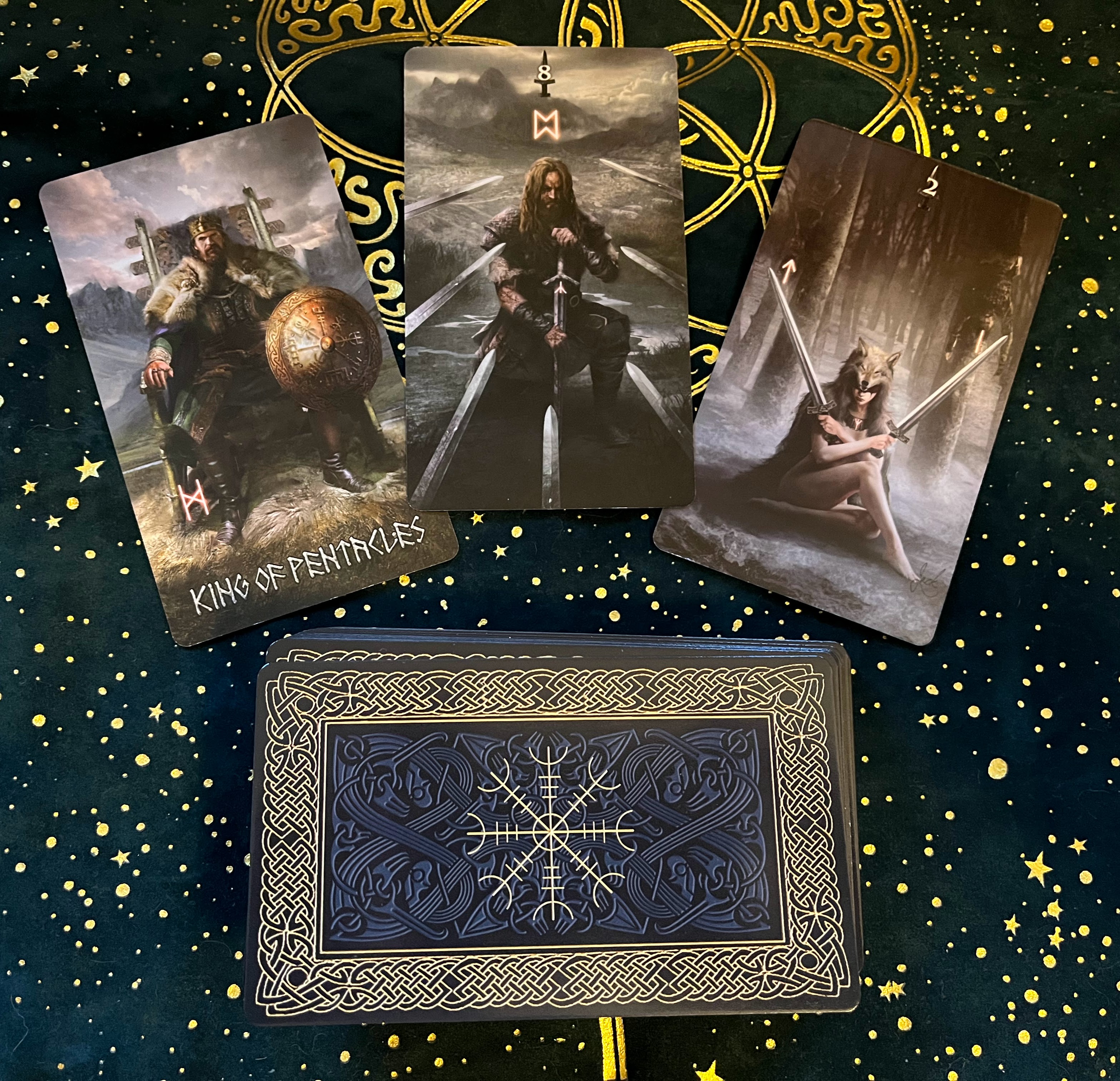 In the past, I’ve read the tarot as a separate spread from the oracle cards, but after doing a month of Lenormand, I had a Galaxy Brain moment and realized I can read where the cards are placed relative to the oracle cards (okay, I know you seasoned veterans do this all the time, but I’m still learning, bear with me).