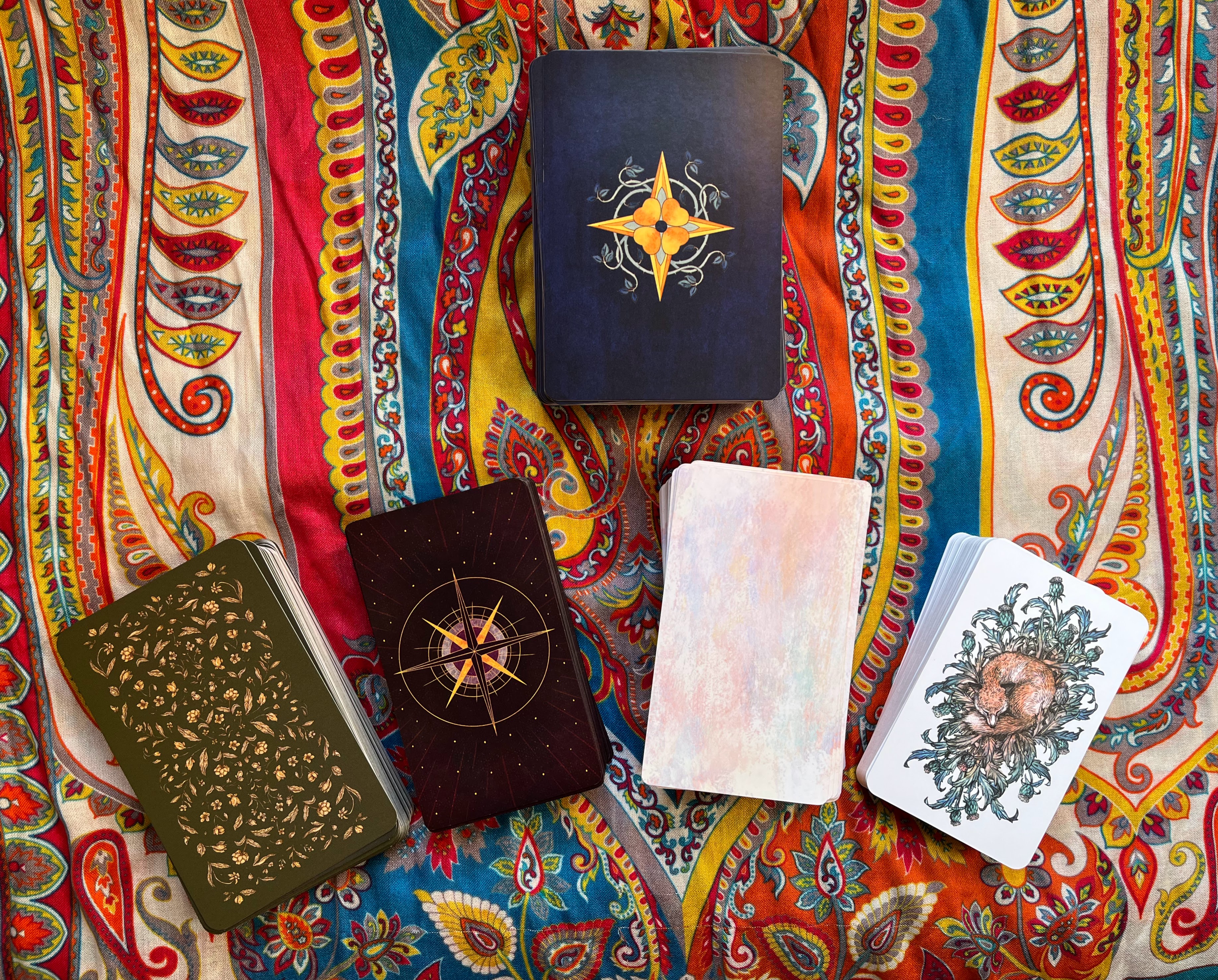 Decks used in this draw: Liminality Oracle, Asphodelon Mythos Tarot, Wild Unknown Animal Spirit oracle, Wild Unknown Archetypes oracle
