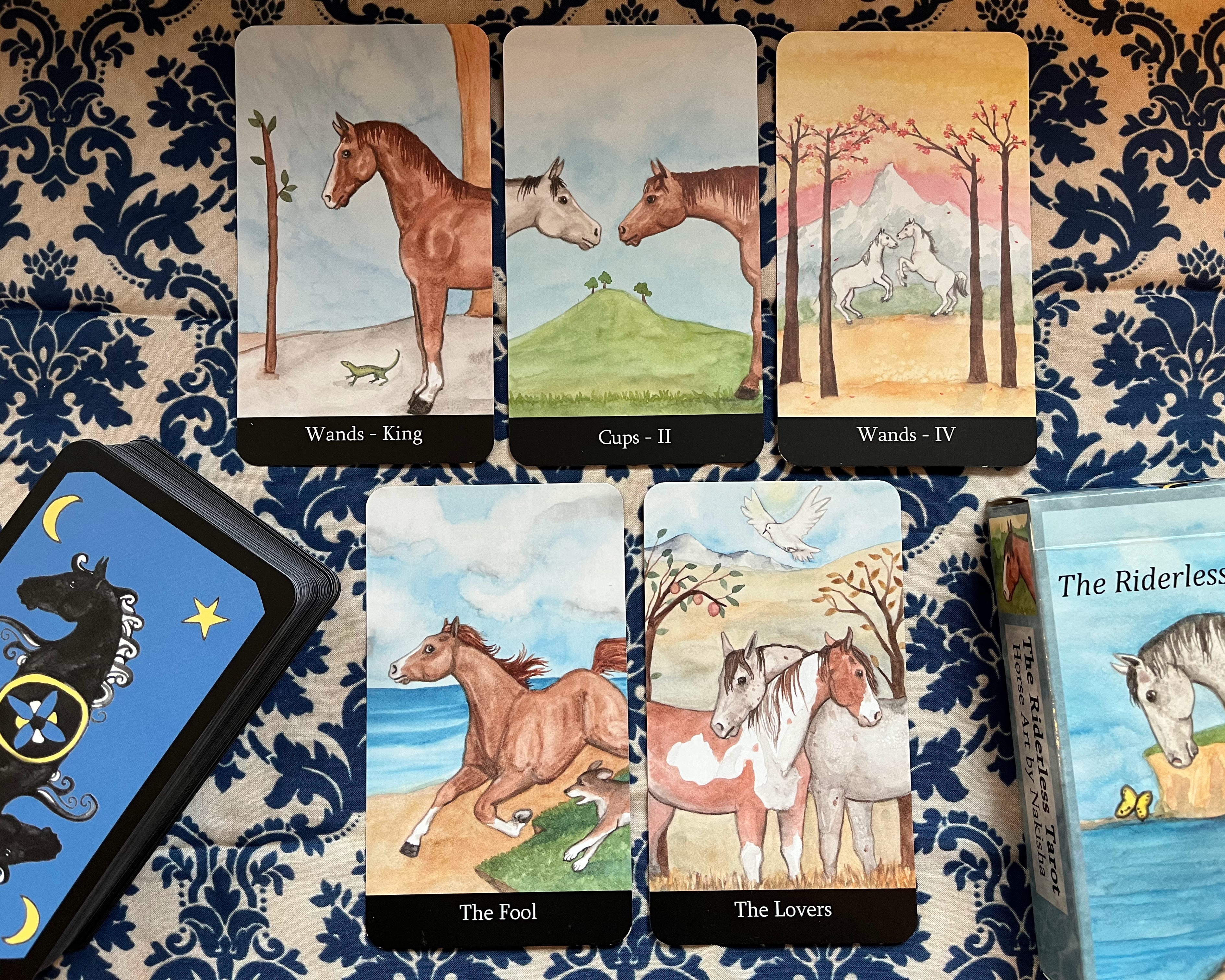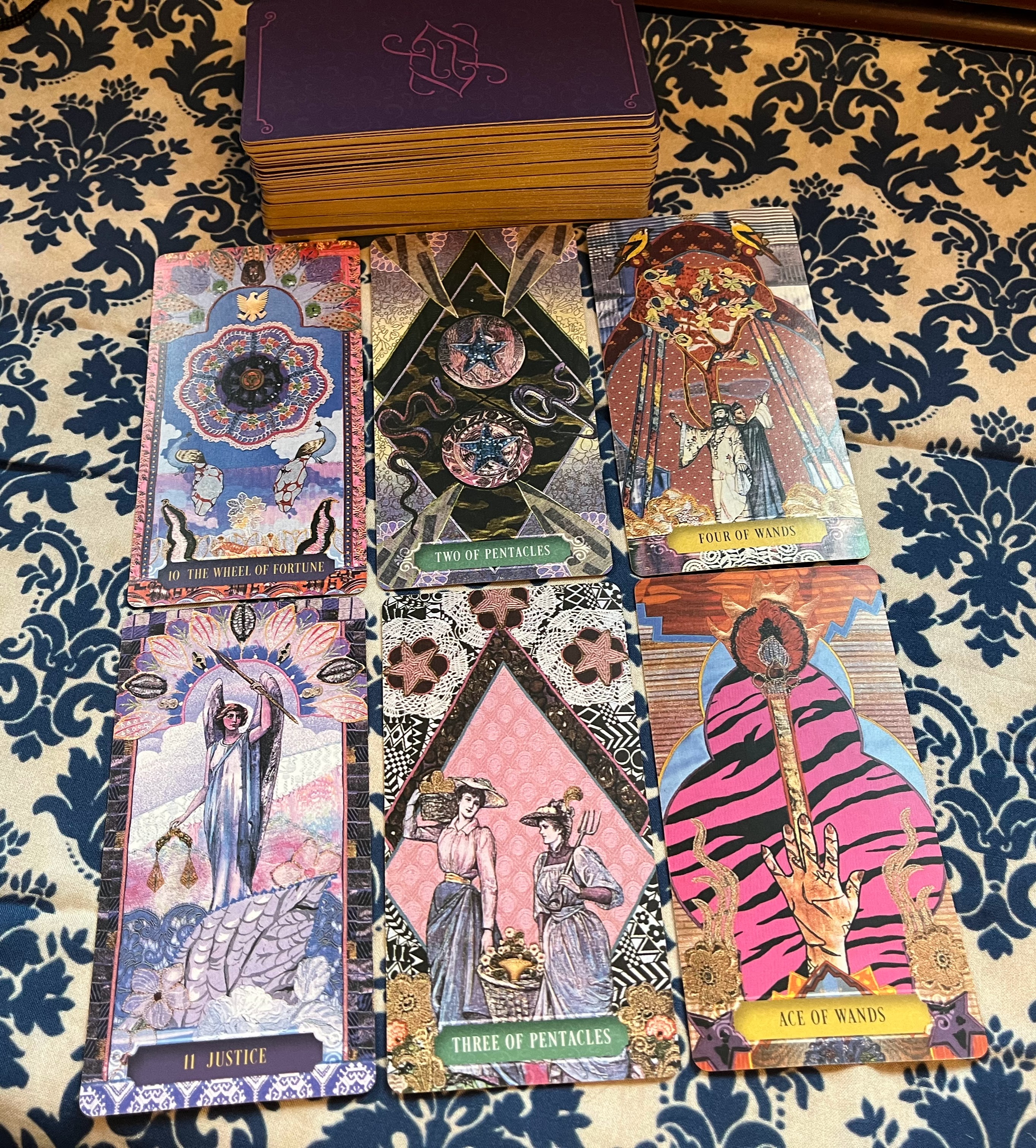 The book(s) is(are) great fun, with lots of extra information, waxing poetics, dream work, and manifestation magic, but you’re going to have to listen in to your inner intuition to make a smooth reading at the end of the day. I personally have gotten great readings, quite cheeky and flirty actually, but it takes some skill on the reader’s part. I think that this deck loans itself particularly well for readings about relationships (friends, lovers, family, enemies, etc.), and I personally consider this a Shahrizad-esque deck in that it evokes images of old-as-time stories with a bit of a satirical twist.