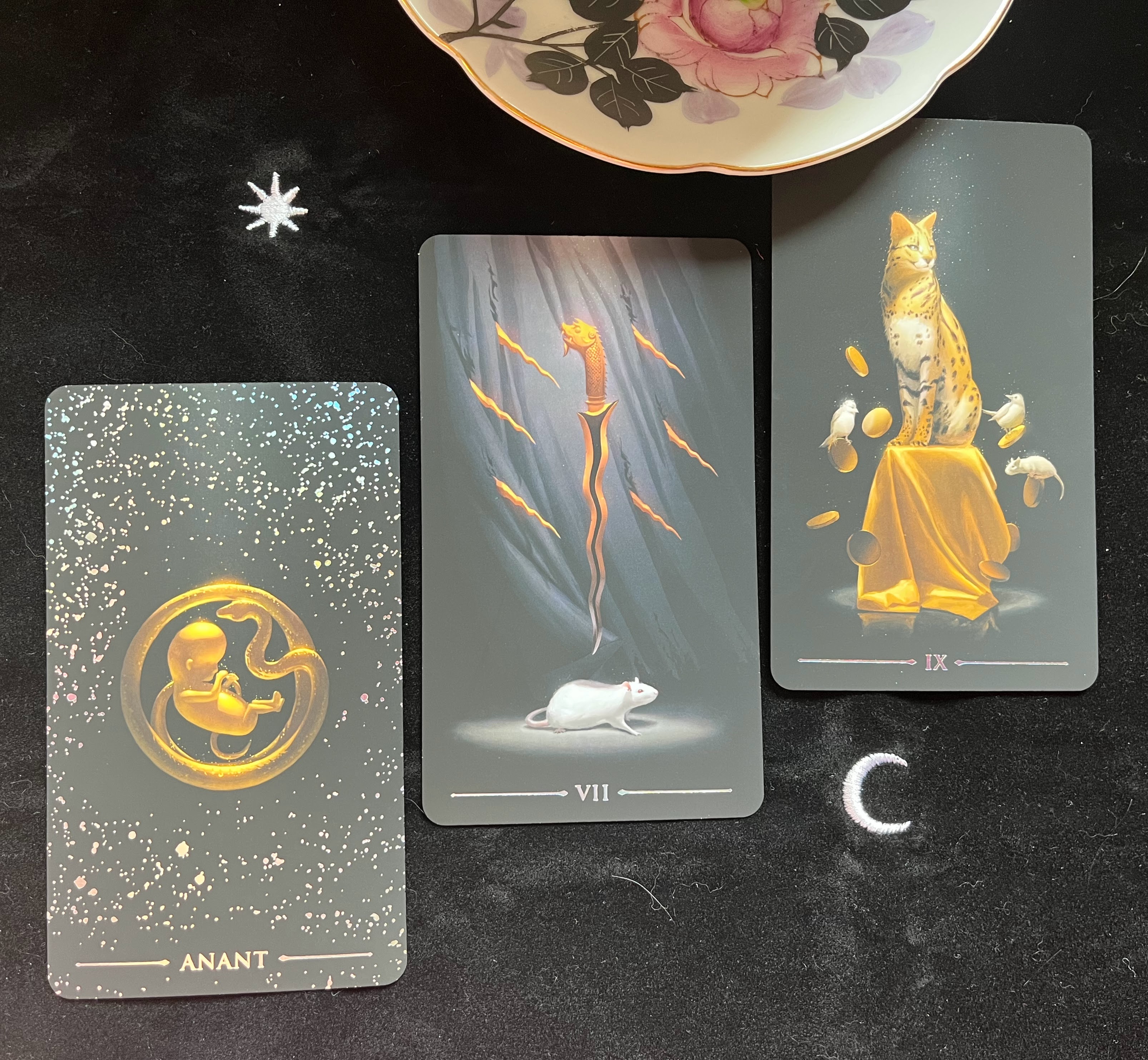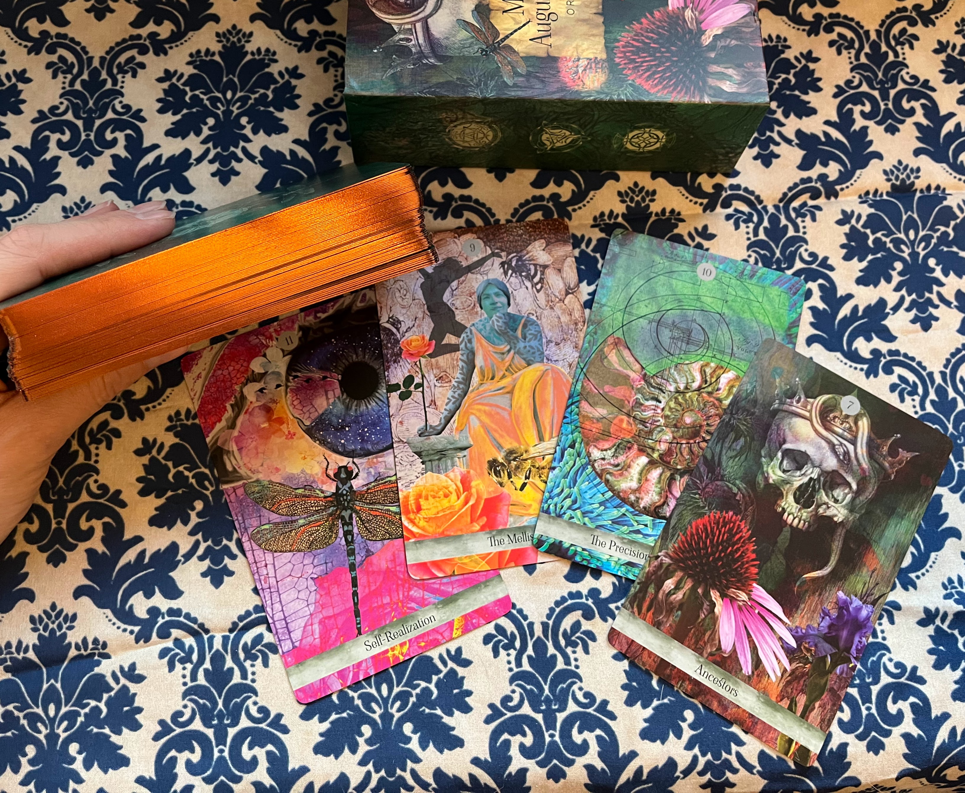 The book differs with each of these two versions I have, and both are fantastic and excellent Tarot literature in general and worth the read even if you don’t pick up the deck very often as they are incredibly insightful and even give dreams/meditations/actions to do for each card that are great exercises in themselves. In this way, the deck offers a rather different approach to working with Tarot and I’m here for it, even if I don’t necessarily have the energy to expend on such activities when I pick up this deck to do a reading.