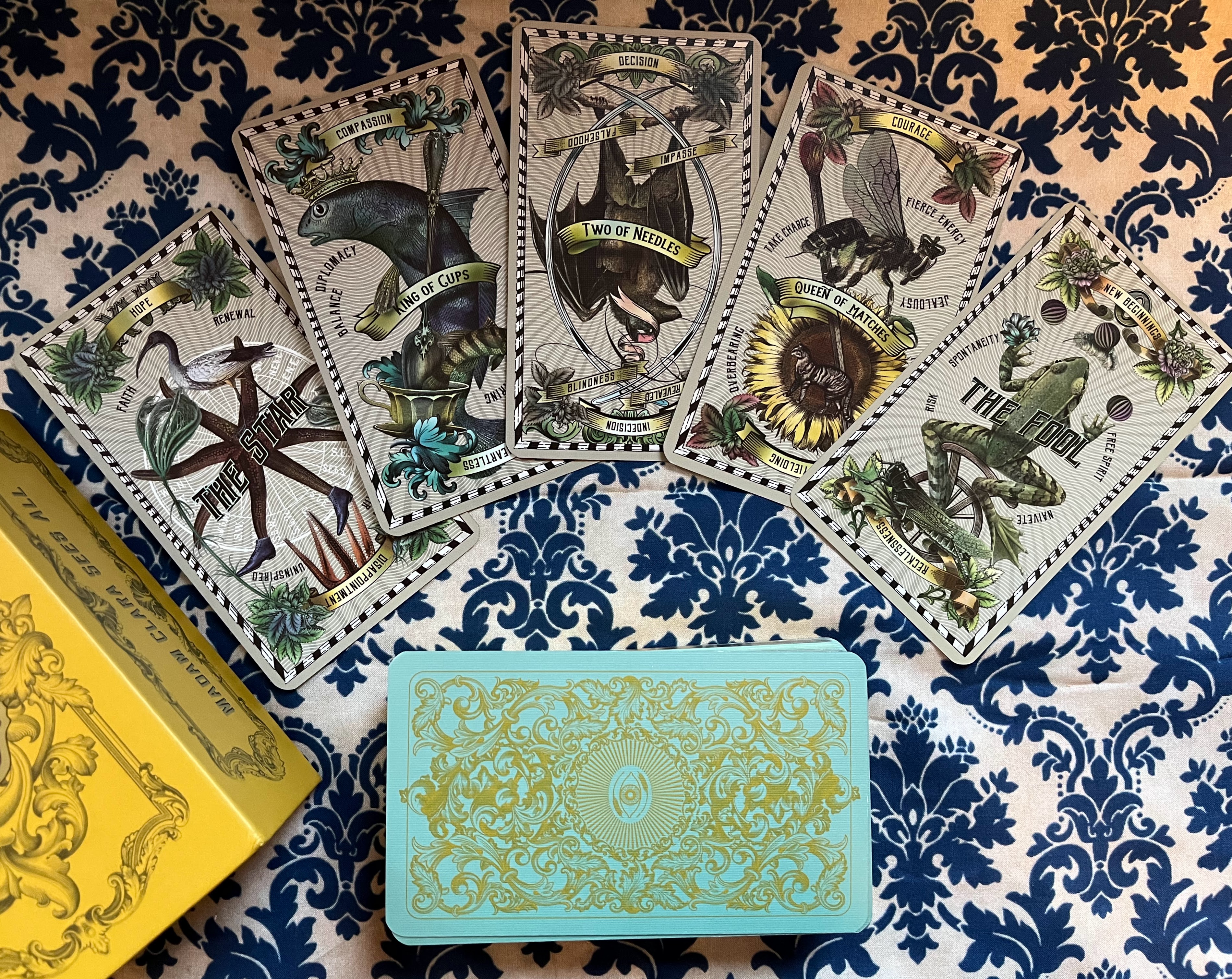That being said, even though I’ve been using this deck steadily for five years, and in well over a hundred readings at this point, I still feel like I’m warming up to it. I have split feelings about The Enchanted. There are some days this deck feels truly magical and gives really on-point readings with its clever and creative imagery. And there are other days it just feels busy, fussy and lacking depth. Unfortunately, it’s not just a deck which I’m in the mood for or not (as many of my decks are) seeing as it has given great readings when I only reluctantly pick it up out of a sense of obligation, and has great readings when I’m purposefully using it as well, and it also gives shit readings when the feeling seems to strike it. I dislike talking about my decks as if they have a sense of agency seeing as I don’t really believe that, but if a deck did have a mind of its own, it would be this deck.
