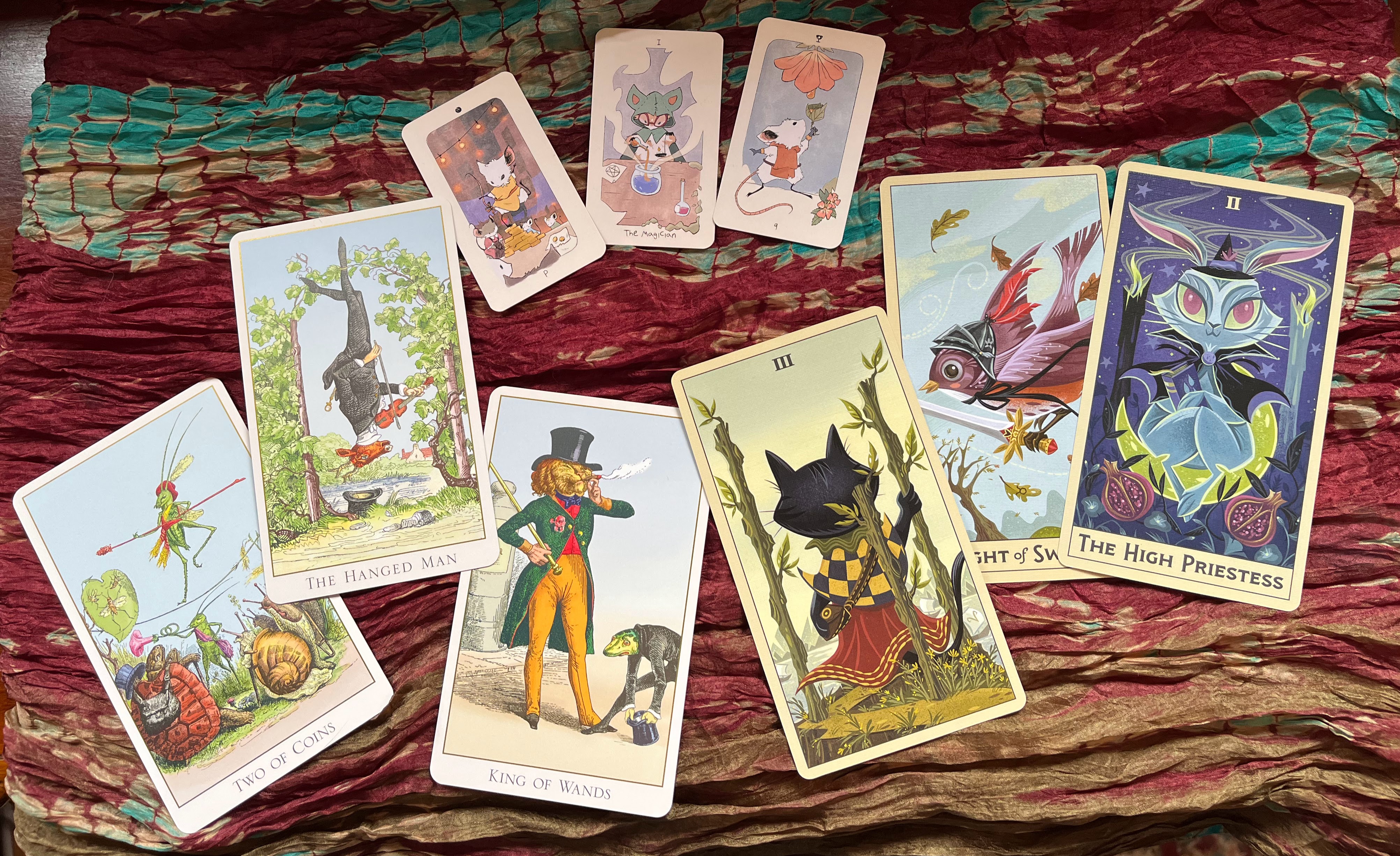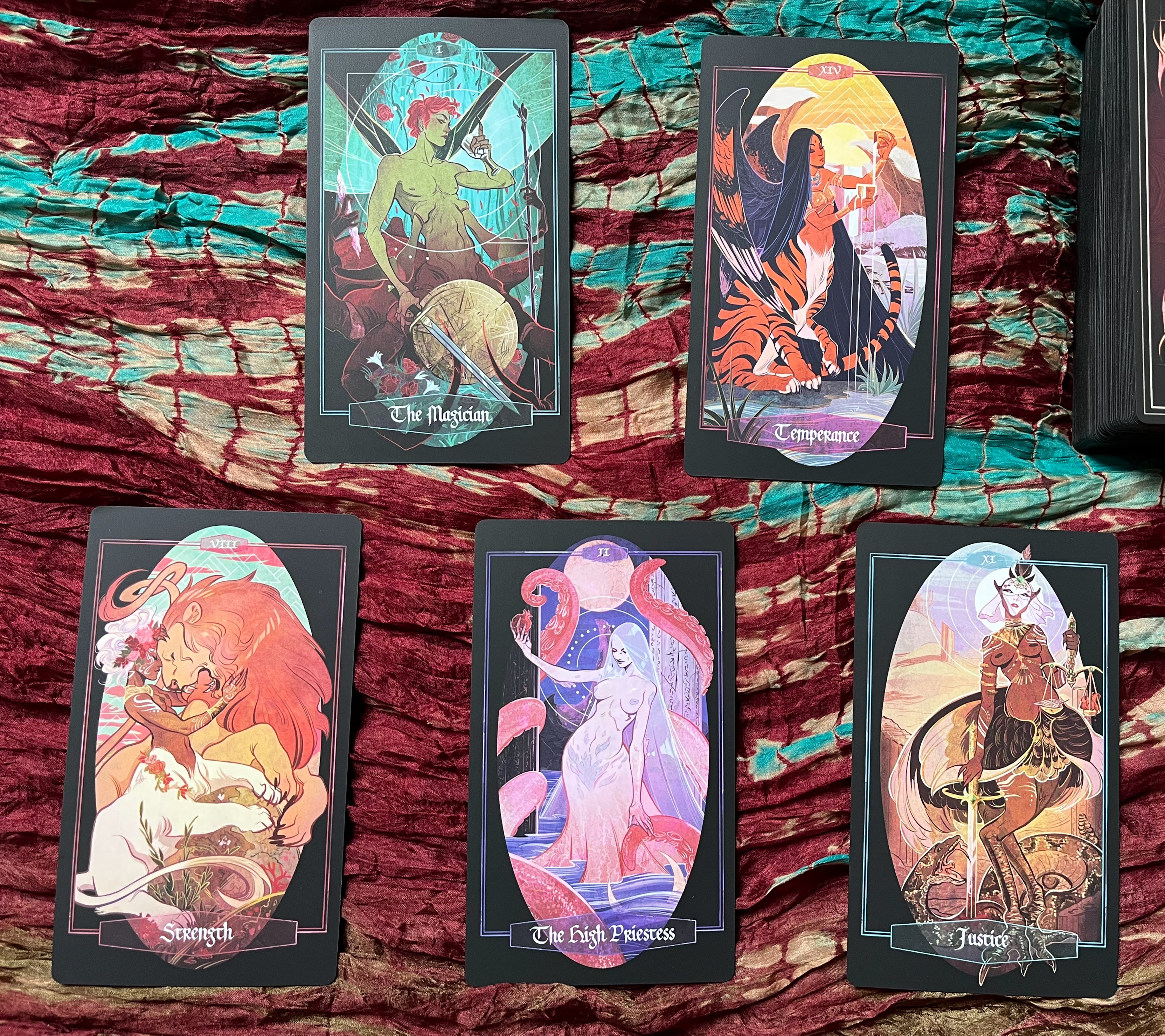This is an old tag I realize I actually wrote when it was first very popular on TarotTube (um, TWO springs ago!) but I never ended up publishing it because I didn’t have the time to take pictures. C’est la vie. Well, better late than never! For funsies, I’ve chosen NEWER decks in my collection rather than the same twenty old guard decks I use over and over in tags (though a few did eek through, sorry). This is too excellent and fun of a tag to let fall by the wayside!