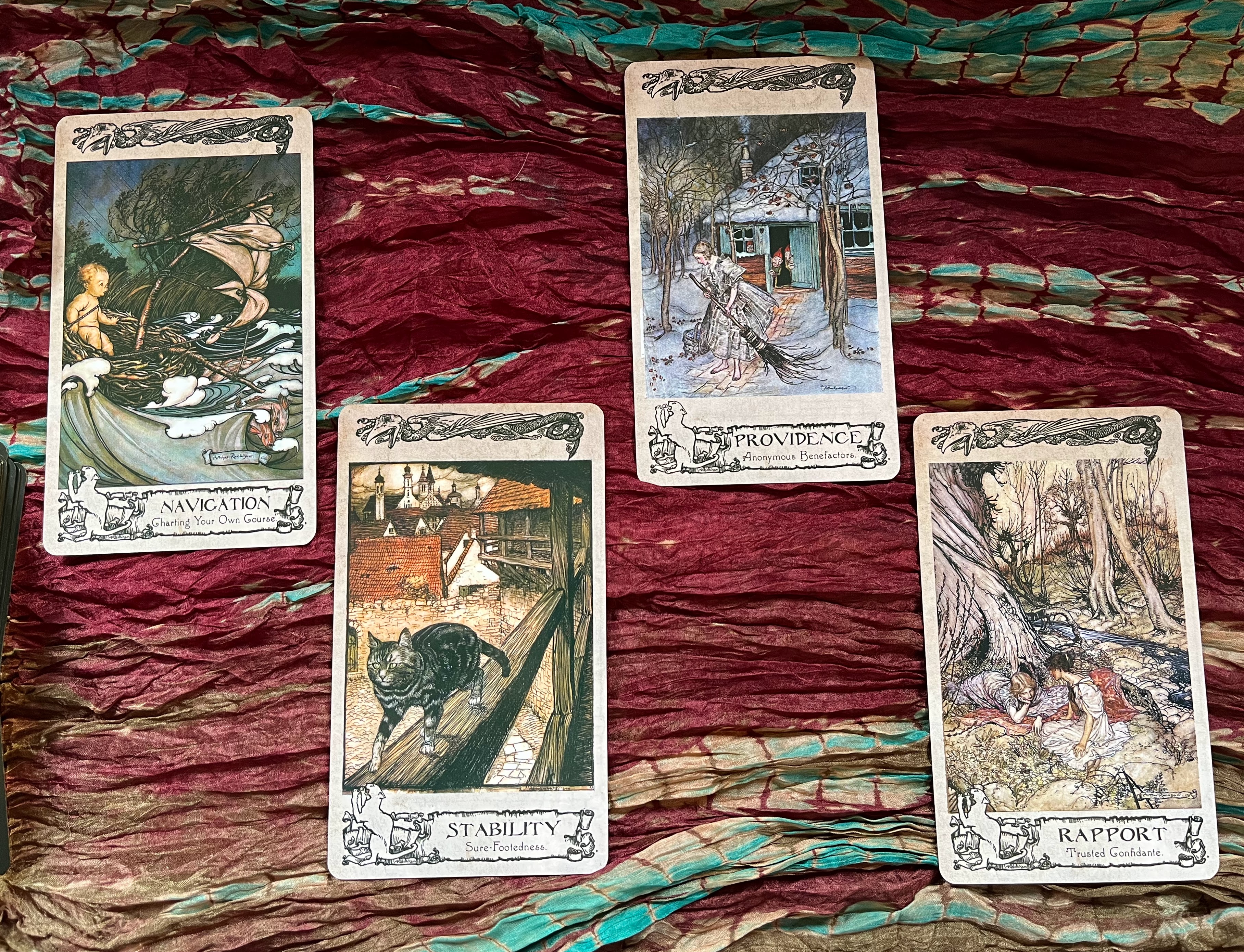 The Nemeth Tarot. This deck repeatedly gives complex, specific, spookily accurate readings (most honestly I didn’t even realize how dead on it was until the thing happened) for both myself and my friend when we use it. It also, well, just has a certain hauntingly beautiful vibe. Don’t get me wrong, I adore this odd little deck, but it is not a deck I pick up and use lightly.